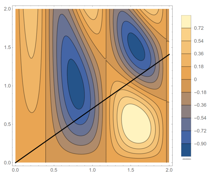 - Imagine a rover follows a linear path through some terrain whose contour plot is given below.