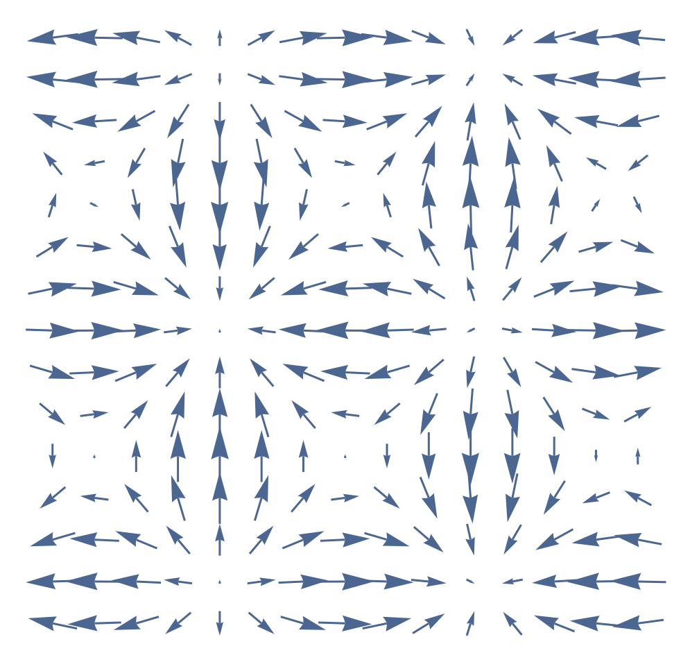 - The image below shows a plot of the gradient of a function $f$. Pick a vector, and then add a small bit of a contour line that would pass through the base of the vector.
