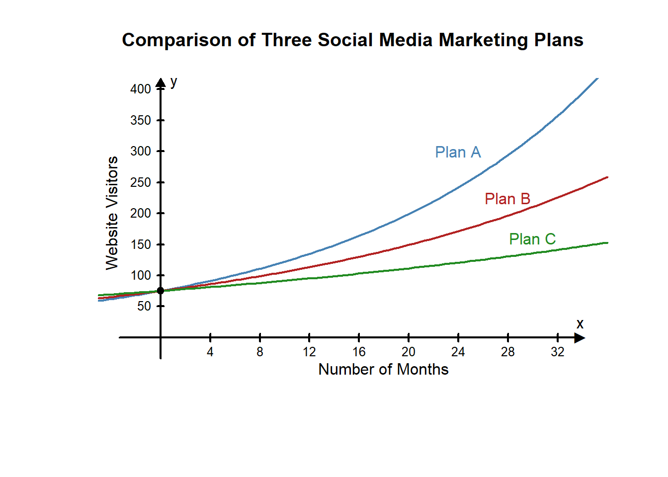 Using the results of his computations, Viktor compares the cost of each plan to the length of time required to double the traffic to his website (see chart above). He finds that Plan A is quite a bit more expensive than Plan B, but Plan B doesn’t take that much longer to double the traffic to his website. Although Plan C is the cheapest, it takes much more time to get the result he wants.