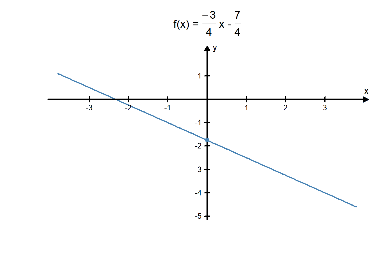 Now this function is written in the slope-intercept form of a linear function. We could graph it using a \(y\)-intercept of \(\frac{-7}{4}\) and a slope of \(\frac{-3}{4}\).