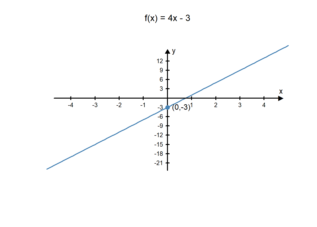 We now know that we can graph this linear function by drawing a line that goes through the point \((0,-3)\) with a slope of \(m=4\).